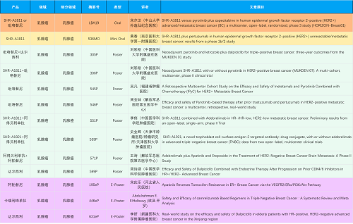 在乳腺癌领域,PG创新产品相关研究共入选1项口头报告、1项简短口头报告、8项壁报和3项电子壁报,共13项研究。吡咯替尼、达尔西利、阿得贝利单抗、瑞康曲妥珠单抗等新老创新药物,均有多篇研究入选,展现出PG医药在乳腺癌领域多年深耕的丰硕成果。